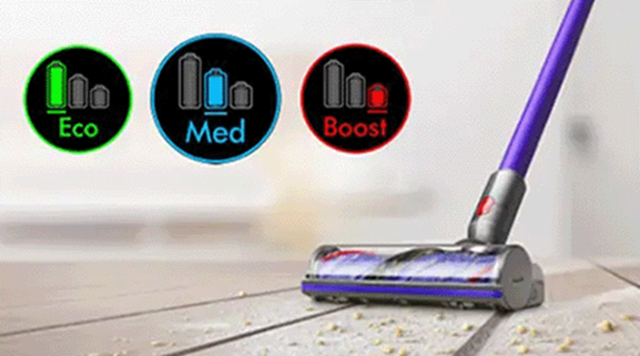 Poti alege dintre 3 moduri de curatare: modul Eco, care asigura timpul maxim de functionare, modul Med si modul Boost, care permite o curatare ultraputernica a murdariei.