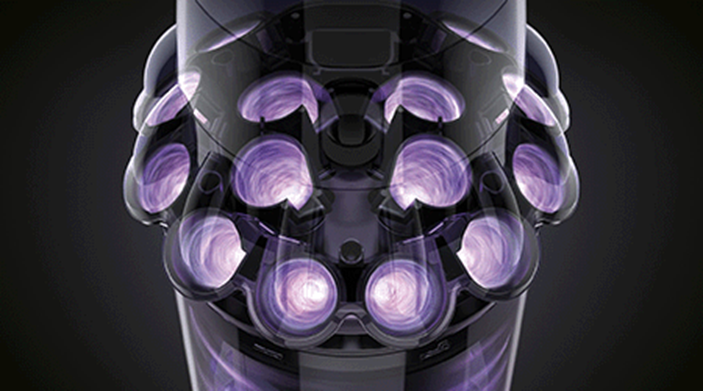 Cei 14 cicloni genereaza forte centrifuge de peste 79.000 G. Astfel, particulele microscopice cum ar fi polenul sau bacteriile sunt aspirate extrem de rapid si eliminate in recipientul de praf.