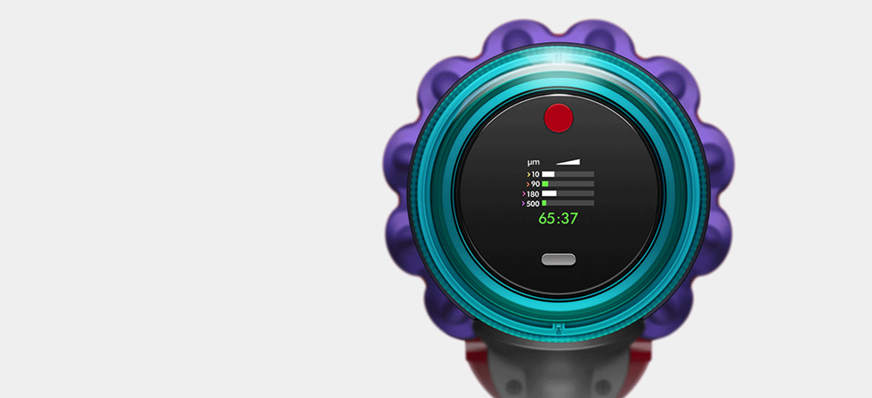 Senzorul piezo numara si masoara de 15,000 de ori pe secunda particulele de praf si adapteaza automat puterea de aspirare atunci cand este necesar. Datele referitoare la particulele aspirate sunt afisate in timp real pe ecranul LCD.