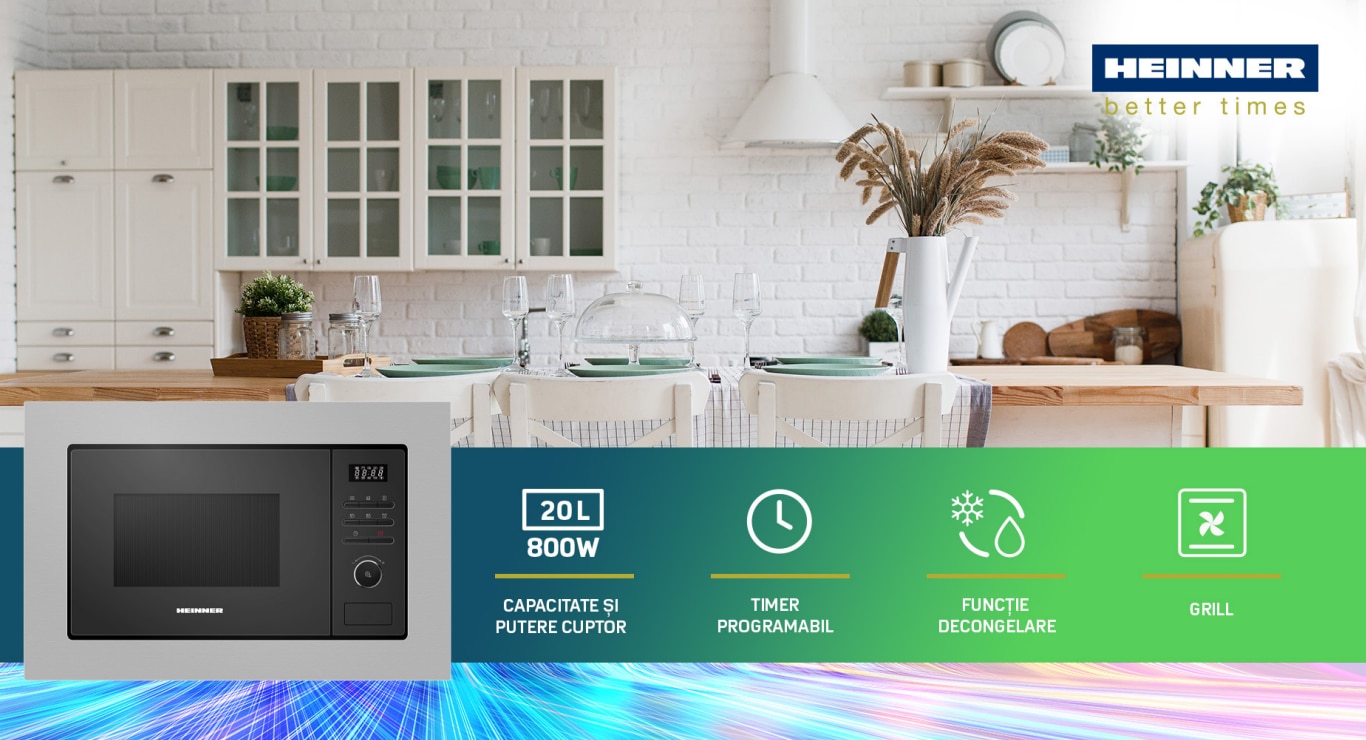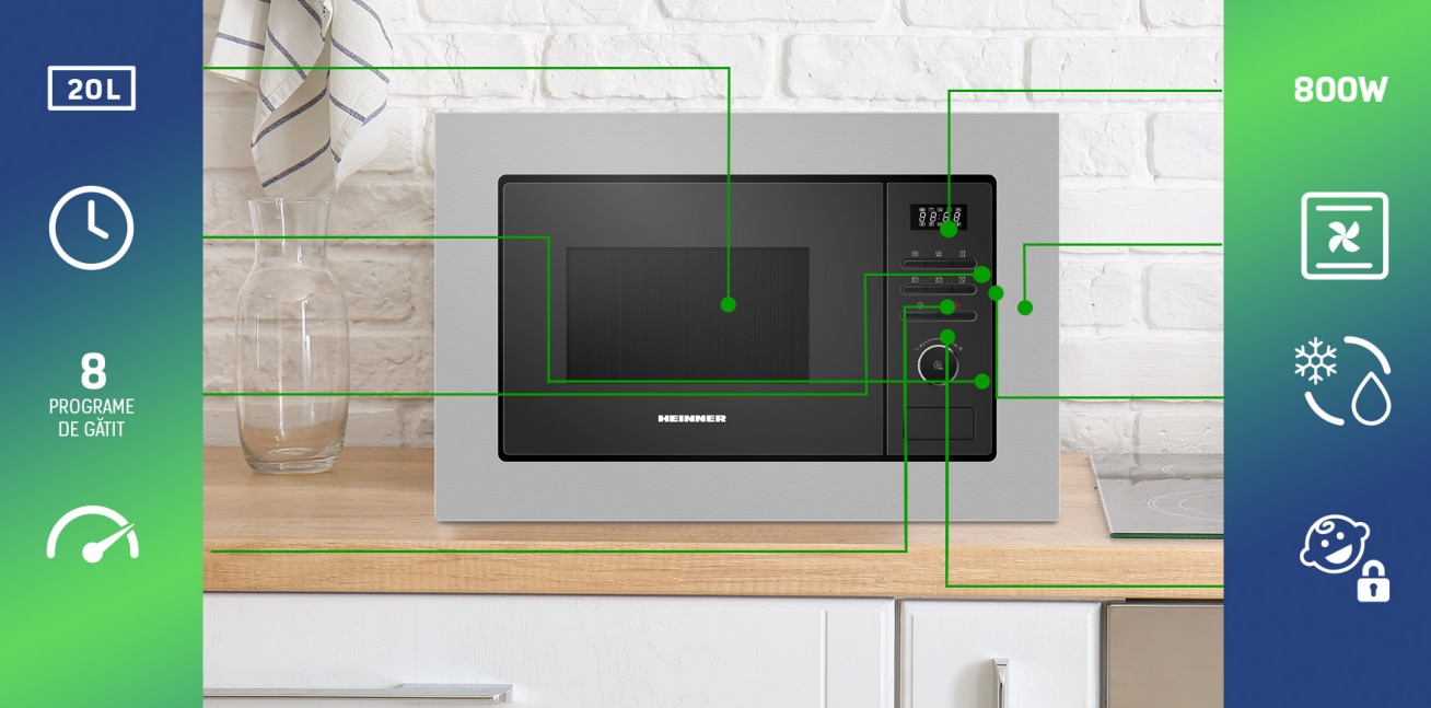 Descrierea produsului Cuptor cu microunde Heinner HMW-MD20BISS, 20 l, Control digital, 1000 W (Inox)