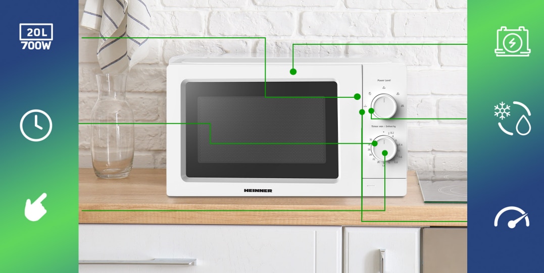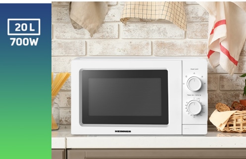 Descrierea produsului Cuptor cu microunde Heinner HMW-MD20IVWH, 19 l, Control mecanic, 700 W, Platou 24.5 cm (Alb)