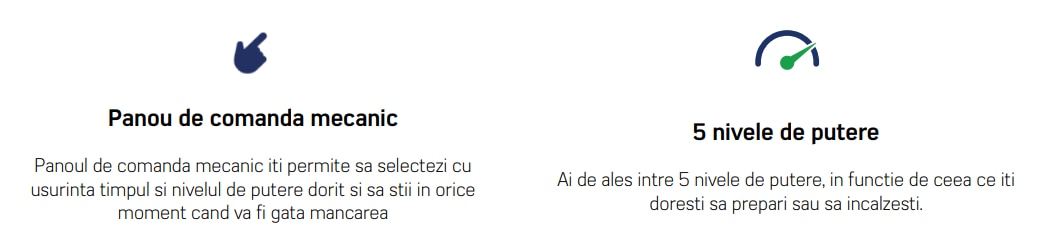 Timer programabil Timerul programabil cu oprire automata iti va permite sa setezi un timp maxim de gatire de pana la 35 de minute. |
