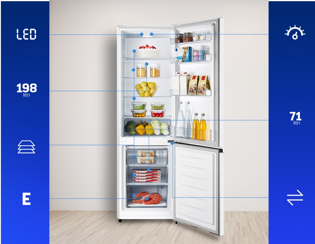 Capacitate totala 269L Spatiul chiar nu mai este o problema, uita de inghesuiala si de chinul de a aranja alimentele. Un spatiu epic, care iti asigura o vedere de ansamblu a ceea ce ai in frigider si congelator. | ![]() |