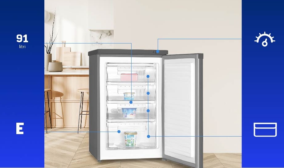 Capacitate totala 91L Capacitatea de depozitare de 91L, de ajutor in orice gospodarie, iti permite sa te bucuri de alimentele preferate tot anul. | ![]() |