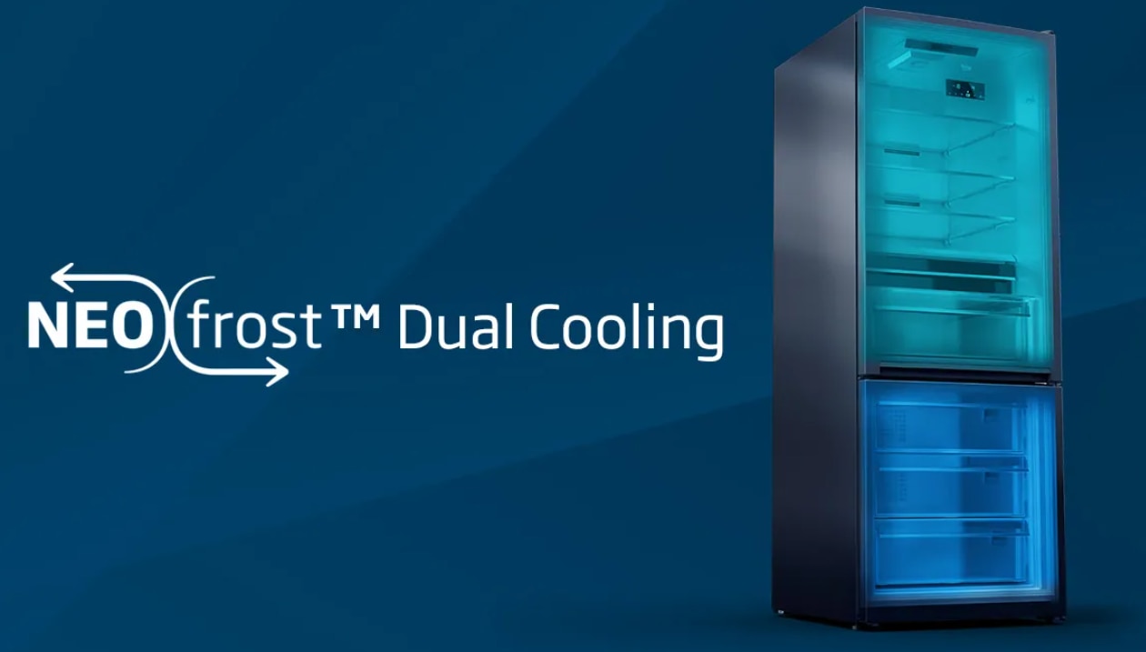 Tehnologia NeoFrost dual cooling, prin sistemele Active Dual Cooling si No Frost, asigura cele mai bune conditii de conservare.Racirea se realizeaza prin intermediul curentilor de aer ventilati ce actioneaza independent in cele 2 compartimente. Aceasta tehnologie previne amestecarea mirosurilor si ajuta la distribuirea uniforma a umiditatii, cat si la restabilirea rapida a temperaturii interioare, dupa deschiderea usii. Astfel, fructele si legumele se mentin ca proaspat culese.