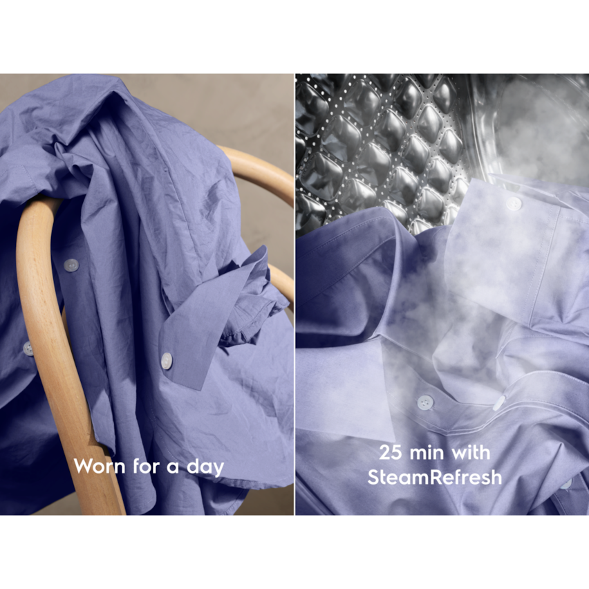 Programul SteamRefresh de 25 de minute este potrivit pentru articolele de îmbrăcăminte delicate și utilizează mai puțină apă decât ciclurile obișnuite de spălare. Pentru o senzație și mai proaspătă, poți adăuga parfumul pentru reîmprospătare cu abur Electrolux.