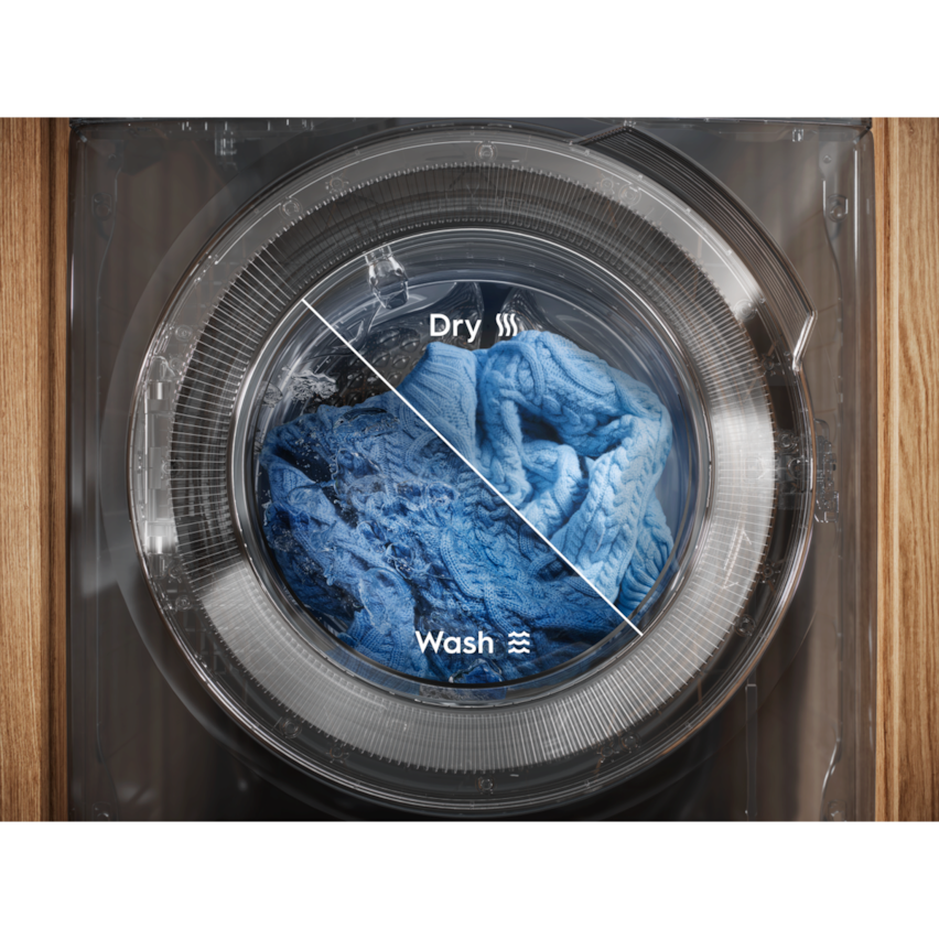 DualCare® îți permite să speli și să usuci cu încredere. Această mașină certificată Woolmark Blue, care are temperaturi și mișcări ale tamburului personalizate, spală și usucă eficient chiar și jachetele și puloverele din lână, garantând că acestea nu vor intra la apă.*