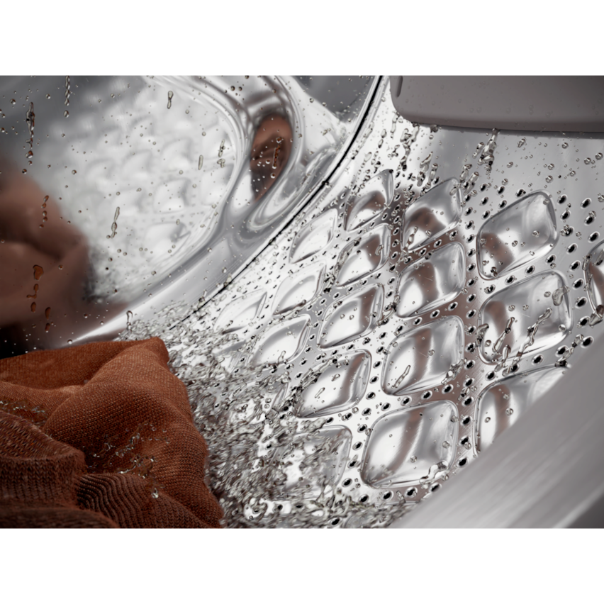 CareDrum permite articolelor de îmbrăcăminte să alunece ușor mulțumită tamburului tip „pernuțe” și a paletei elevatoare. Mulțumită tiparului unic al tamburului, acesta este delicat cu hainele.