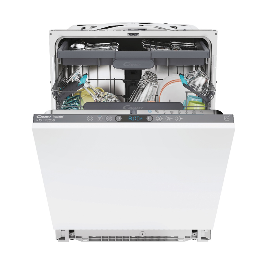 Masina de spalat vase incorporabila Candy CI 6E7F1A, 16 seturi, 8 programe, Clasa E, Conectivitate WiFi, Touch control, Speed-Drive Inverter Motor, MaxiTUB, Start Delay, 60 cm