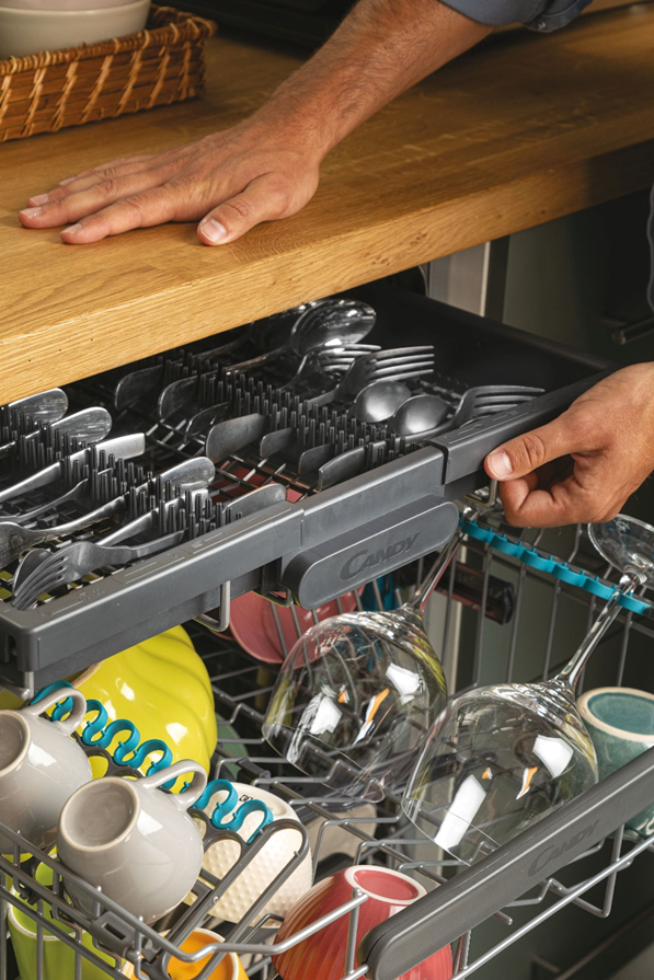 Masina de spalat vase Candy Rapido este prevazuta cu 3 cosuri care permit amplasarea ideala a vaselor/tacamurilor pentru spalarea perfecta!