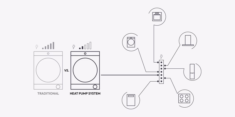 De câte ori doriți să utilizați două aparate în același timp, dar vă este frică să nu se sparga vreo teava? Candy are o soluție și pentru această problemă: sistemul pompei de căldură asigură un consum de energie cu adevărat scăzut, de 0,7 kw / h, aproximativ o treime din cantitatea consumată de un uscător obisnuit de condensare. Acest lucru este posibil printr-un sistem cu circuit închis care împiedică dispersia căldurii prin lucrul la temperaturi mai scăzute. Acest lucru permite utilizarea simultană a uscătorului și a mașinii de spălat sau a altor aparate, economisind atât timp cât și energie.