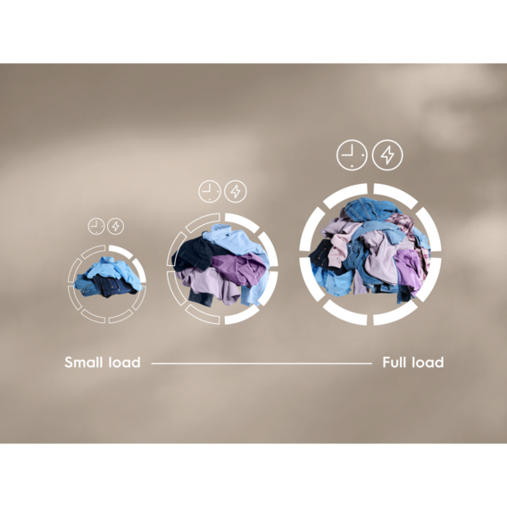 SensiCare măsoară temperatura și umiditatea fiecărei încărcături, ajustând timpul și consumul de energie în funcție de necesitate, pentru ca hainele să fie protejate împotriva supraîncălzirii și uscării excesive. Hainele arată și se simt ca noi pentru mai mult timp, fără risipă de energie.