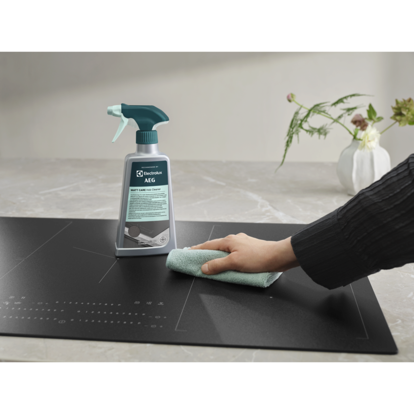 Soluţia de curăţare Matt Care ajută la menținerea aspectului sofisticat al plitelor cu inducție din sticlă ceramică mată, inclusiv al plitelor SaphirMatt® și SaphirMatt® SE. Plita rămâne impecabilă cu această soluție cu formulă specială pentru curățare în profunzime.