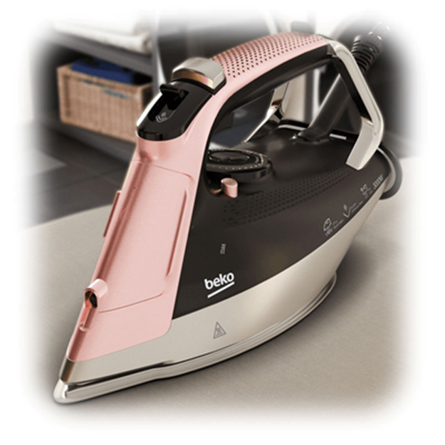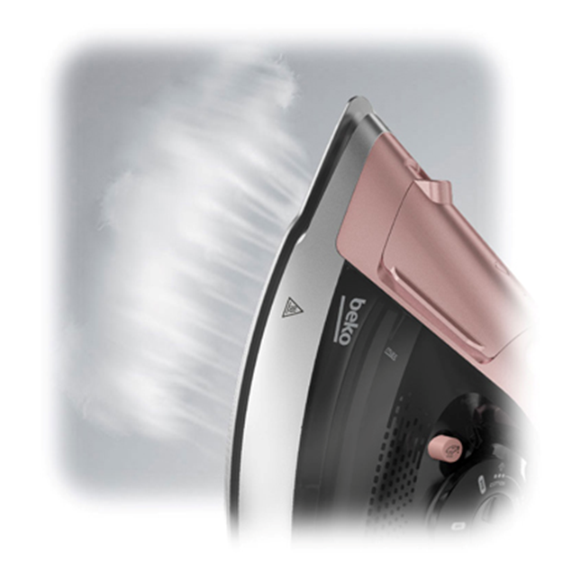 Descrierea produsului Fier de calcat BEKO SIM8130P, 3000 W, 270 g/min, 350 ml, Talpa Soft Glide (Negru/Roz)