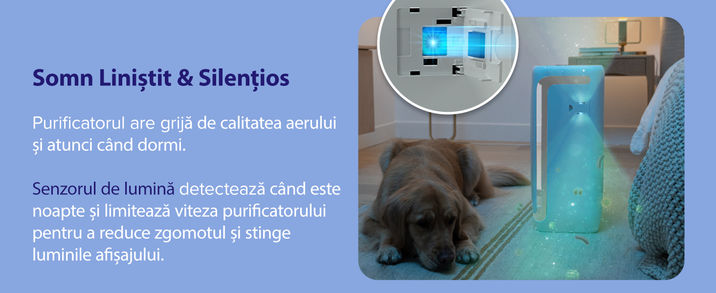 Purificatorul capteaza cel putin 99,97% din particulele in suspensie de 0,3 microni, cum ar fi praful, particulele de fum, polenul si parul de animale, precum si mirosurile, vaporii, fumul si COV. Datorita senzorului de praf cu infrarosu, scaneaza calitatea aerului din jur si ofera actualizari in timp real ale calitatii aerului pe ecran si in aplicatia VeSync.