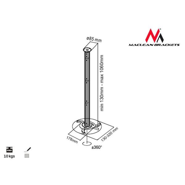 Descrierea produsului Suport de tavan universal pentru videoproiector, reglabil, rotire 360 grade (Argintiu)