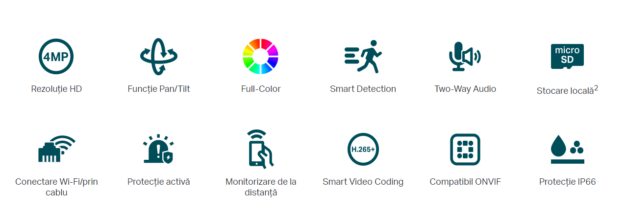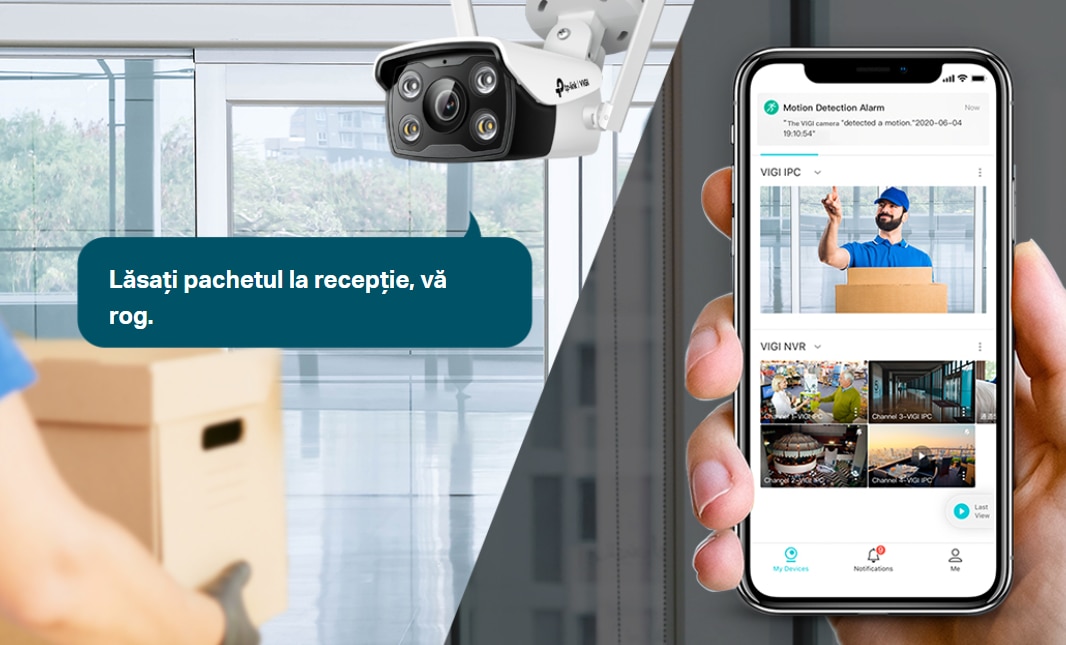 Camera VIGI dispune de capacitati inteligente de detectare si trimitand notificari instant pentru evenimente precum detectarea miscarii, incalcarea perimetrului sau incercarea de obstructionare a camerei.