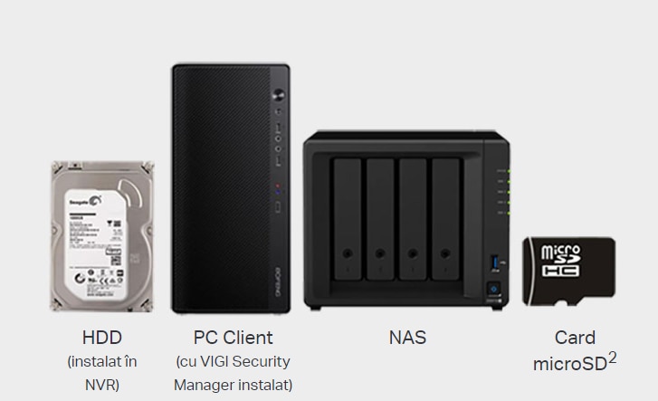 Stocarea locala este o optiune valabila pentru oricare dintre optiunile de management, alaturi de optiunea unui card microSD aflat in camera VIGI C340-W.