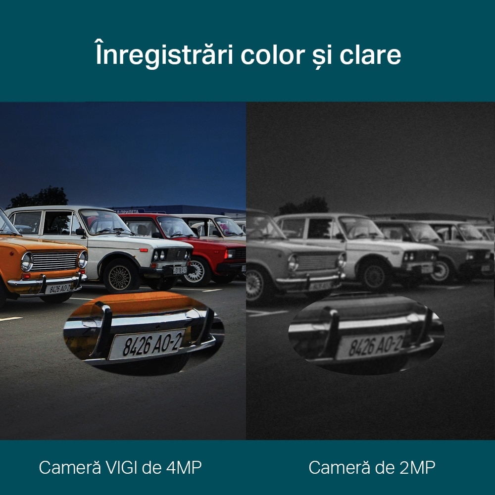 Prin senzorul high-sensivity si LED-urile integrate, se pot realiza inregistrari color chiar si in timpul noptii. Cei 4 megapixeli ofera inregistrari video clare, la rezolutii ridicate de pana la 2560×1440.