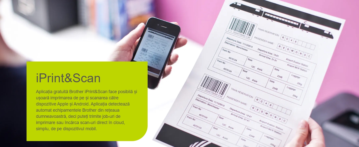 iPrint&Scan este o aplicatie prietenoasa pentru dispozitive Apple, Android (inc Kindle Fire) si Windows Mobile, care va permite sa imprimati poze, documente si pagini web direct pe imprimanta Brother si sa scanati in dispozitivul mobil pentru a partaja informatia cu colegii, prietenii si familia.