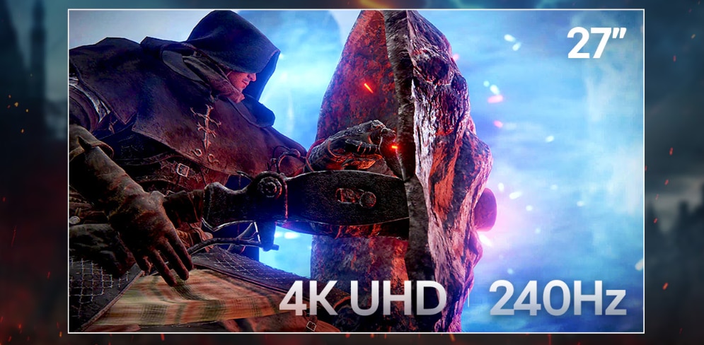 Primul nostru monitor de gaming din lume de 27 inch cu rezolutie 4K si rata de reimprospatare de 240Hz, dimensiunea preferata a gamerilor, ofera cea mai buna experienta, in special pentru cei care se bucura de titlurile FPS. Cu un timp de raspuns de 1 ms si panoul Nano IPS Black, obtineti avantajul chiar si in cele mai intunecate lupte.