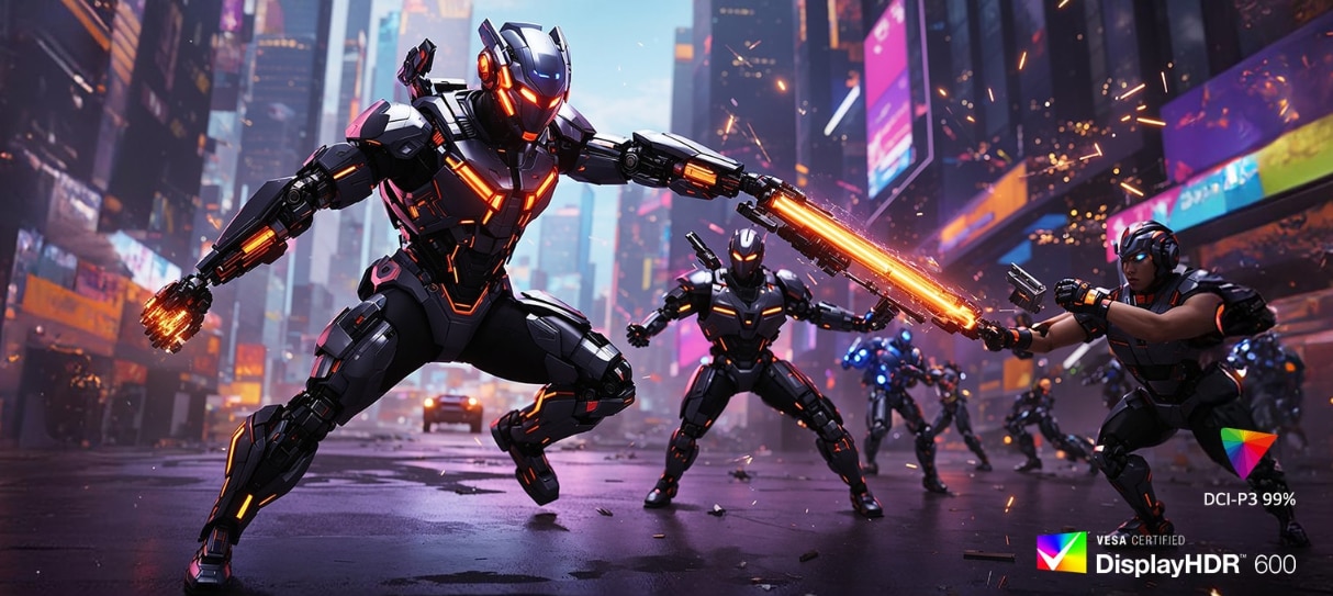 Monitorul nostru de jocuri suporta un spectru larg de culori, 99% (Tip.) din gama de culori DCI-P3, exprimand culori de inalta fidelitate pentru reproducerea cu VESA DisplayHDR 600, permitand o experienta de joc realista.