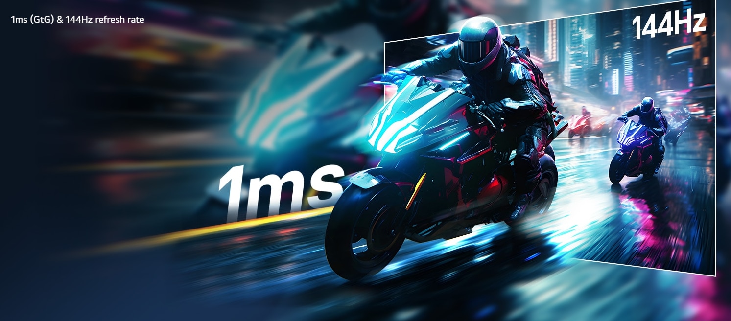 Pentru a va oferi un raspuns rapid de 1 ms (GtG) si o rata de reimprospatare rapida de 144 Hz, reducand efectul de ghosting invers pentru imagini clare si fluide. Cufundati-va intr-un gameplay mai captivant cu fiecare cadru.