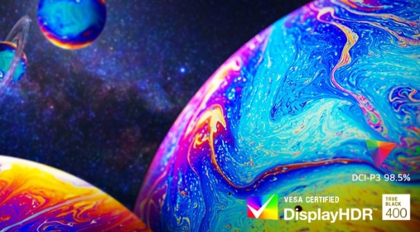 VESA DisplayHDR True black 400 face ca fiecare scena, indiferent daca este luminoasa sau intunecata, sa prinda viata cu detalii realiste, cu un raport de contrast de 1,5M. Lasati-va cuprinsi de jocul intr-o lume mai vibranta, creata de DCI-P3 98,5% (tipic).