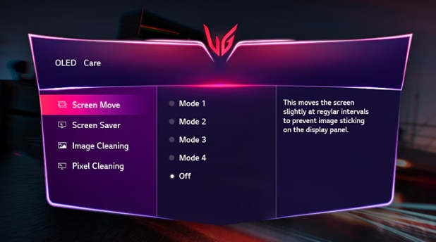 OLED Care ajuta la prevenirea aparitiei imaginii reziduale, a arderii ecranului, care apare atunci cand se schimba imaginea noua dupa ce o imagine statica cu contrast ridicat a fost afisata pentru o perioada lunga de timp.