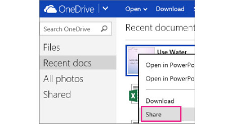 Accesează OneDrive, fă click dreapta pe document și apoi fă click pe Share.
