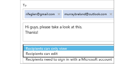 Atenție: Dacă vrei să restricționezi accesul la document, fă click pe Recipients don’t need a Microsoft account și schimbă opțiunea în Recipients need to sign in with a Microsoft account.
