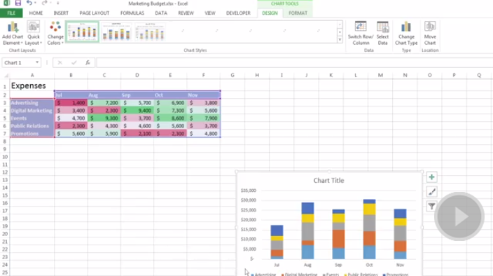 Noul instrument Quick Analysis îți permite să transformi datele tale într-un grafic sau într-un tabel în maxim 2 pași. Pre-vizualizează datele cu ajutorul formatării condiționale, sparklines sau grafice și alege forma cea mai bună – cu doar 1 click.