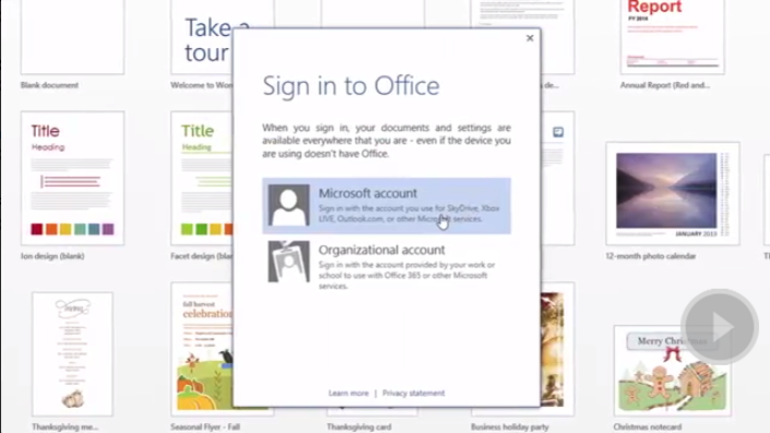 Autentificându-te în Office 2013, poți lucra de oriunde, oricând. Salvezi fișierele online și le poți accesa aproape de oriunde și le poți partaja cu oricine. Indiferent de ce dispozitiv utilizezi, setările și tema grafică aleasă de tine te vor însoți de fiecare dată când ești autentificat.