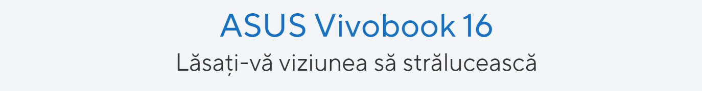 Totul este mai usor cu puternicul ASUS Vivobook 16, laptopul plin de functii cu caracteristici prietenoase cu utilizatorul, inclusiv un ecran cu balama de 180° de tip lay-flat, un ecran fizic pentru camera web si taste functionale dedicate pentru a activa sau dezactiva microfonul. Sanatatea dvs. este in maini sigure cu ASUS Antimicrobial Guard Plus care protejeaza suprafetele atinse frecvent, iar touchpad-ul mai mare este acum mai prietenos cu degetele. Bucurati-va de puterea fluida a Vivobook 16!