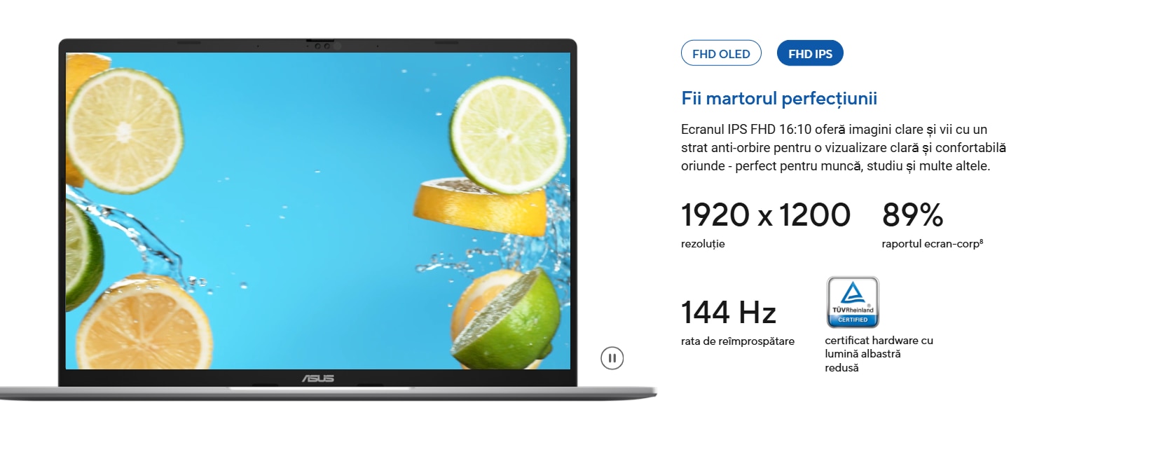 Ecranul IPS FHD 16:10 ofera imagini clare si vii cu un strat anti-orbire pentru o vizualizare clara si confortabila oriunde - perfect pentru munca, studiu si multe altele.