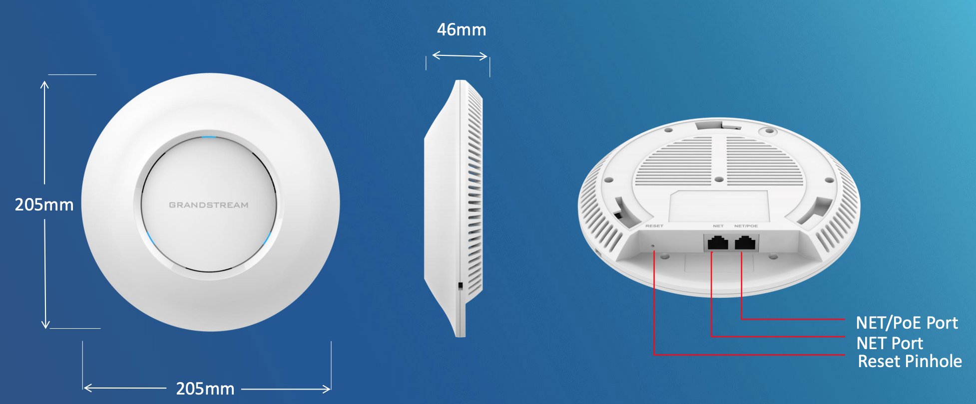 GWN7615 include suport pentru QoS avansat, aplicatii in timp real cu latenta redusa, retele mesh, portaluri captive, peste 200 de clienti concurenti per AP si porturi de retea Gigabit duale cu PoE / PoE +