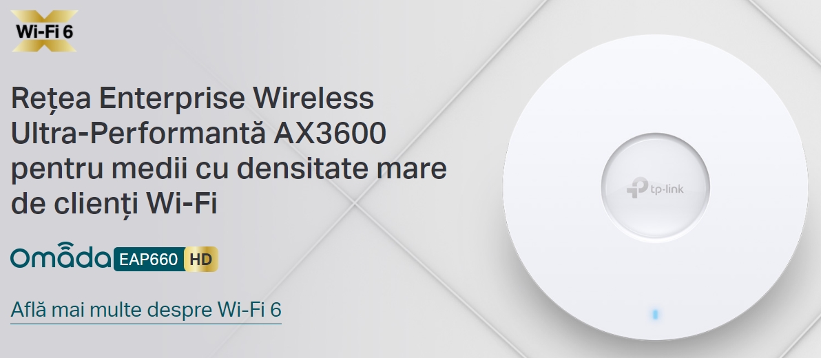 Descrierea produsului Access point Wireless TP-LINK EAP660 HD, WiFi 6, Gigabit, Dual Band, 3550 Mbps (Alb)