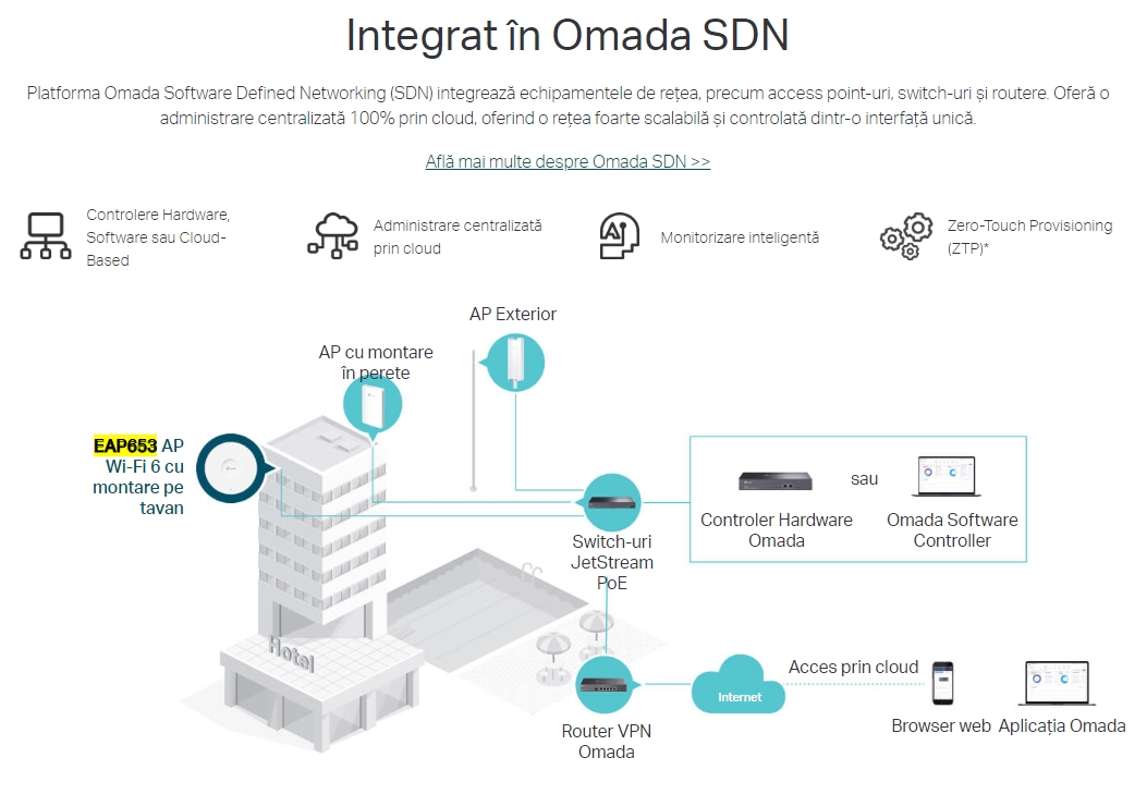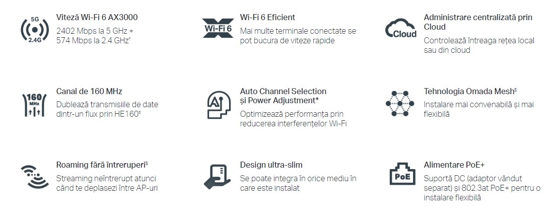 Descrierea produsului Access Point Wireless TP-LINK Omada EAP653, Wi-Fi 6, AX3000 (Alb)