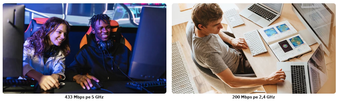 MA20N combina 200 Mbps pe 2,4 GHz (perfect pentru navigare si e-mail) si 433 Mbps pe 5 GHz (ideal pentru streaming HD si jocuri), astfel incat sa aveti flexibilitatea de a va aloca dispozitivele retelelor dedicate pentru a face mai mult in acelasi timp.