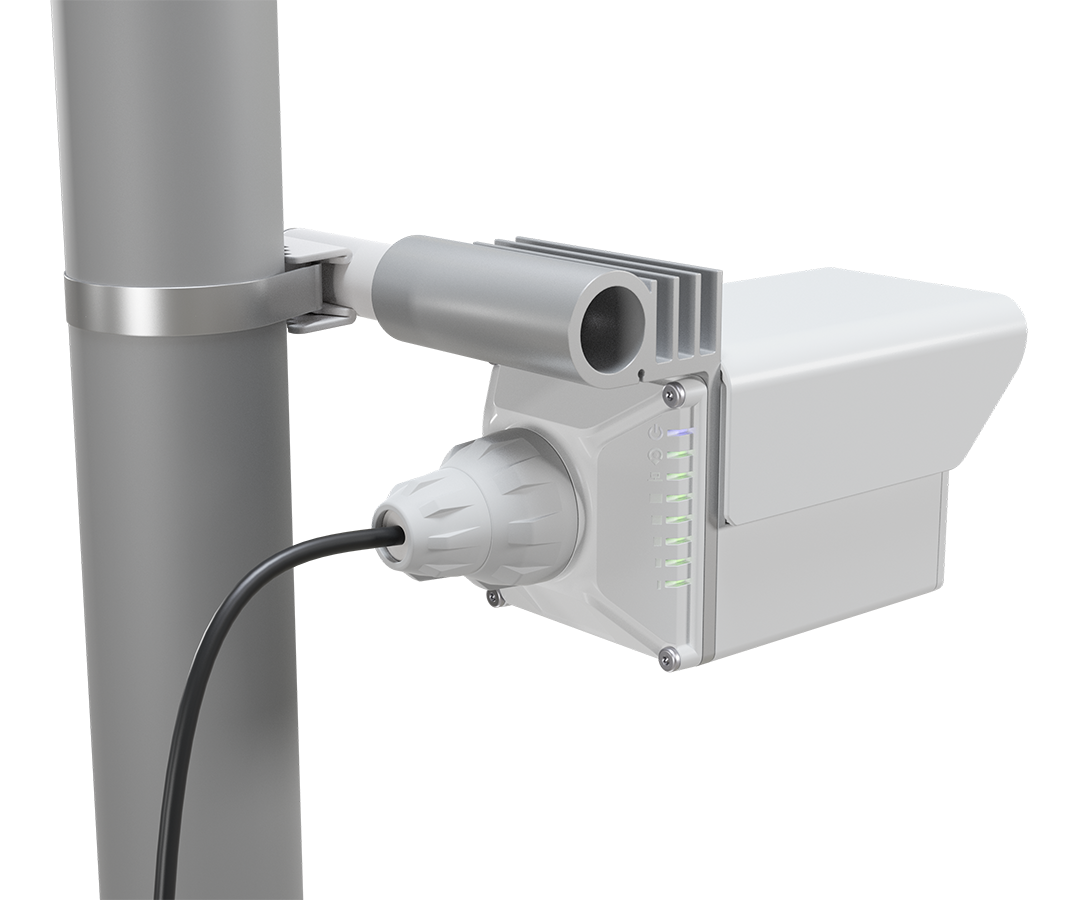Dispozitivul este echipat cu 1 port Ethernet gigabit 10/100/1000 Mb/s, poate fi alimentat prin PoE pasiv sau PoE in standard IEEE 802.3af/.