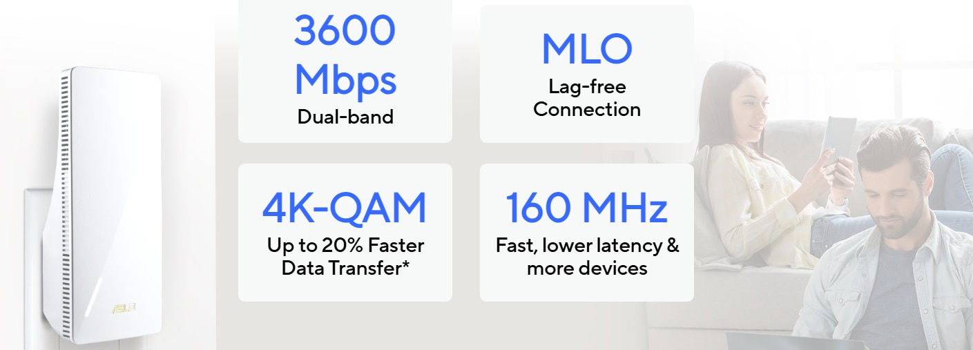 Range Extender ASUS RP-BE58, BE3600, Dual-Band, MLO, Extend Seamless AiMesh WiFi Systems