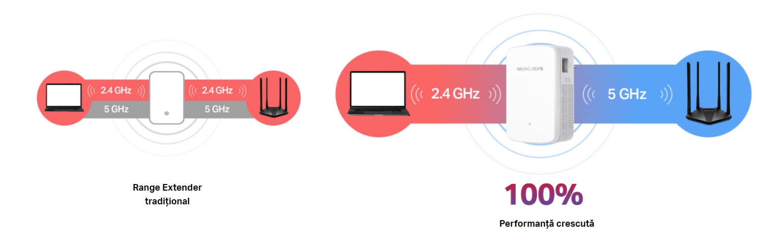 Elimina zonele fara semnal — Extinde cu usurinta semnalul WiFi in toate colturile locuintei tale.
