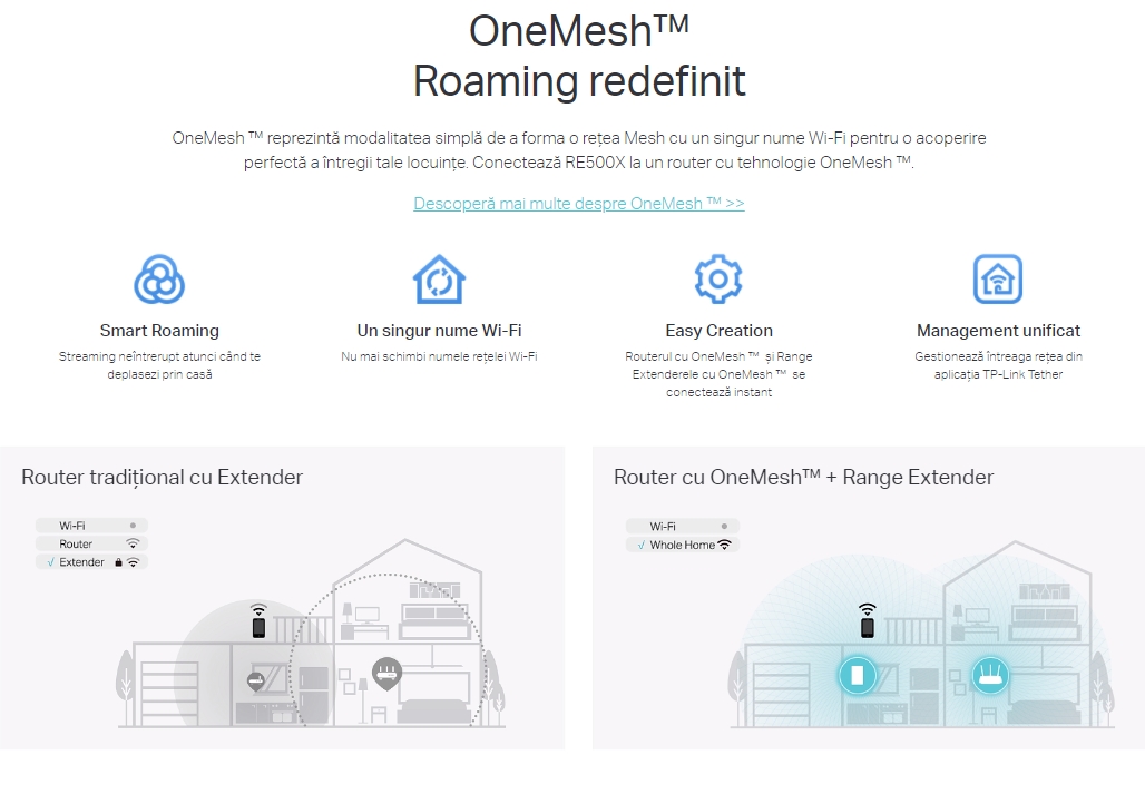 Range Extender Wireless TP-LINK RE500X, Gigabit, Dual Band, WiFi 6, 1500 Mbps, 2 x Antene interne (Alb)