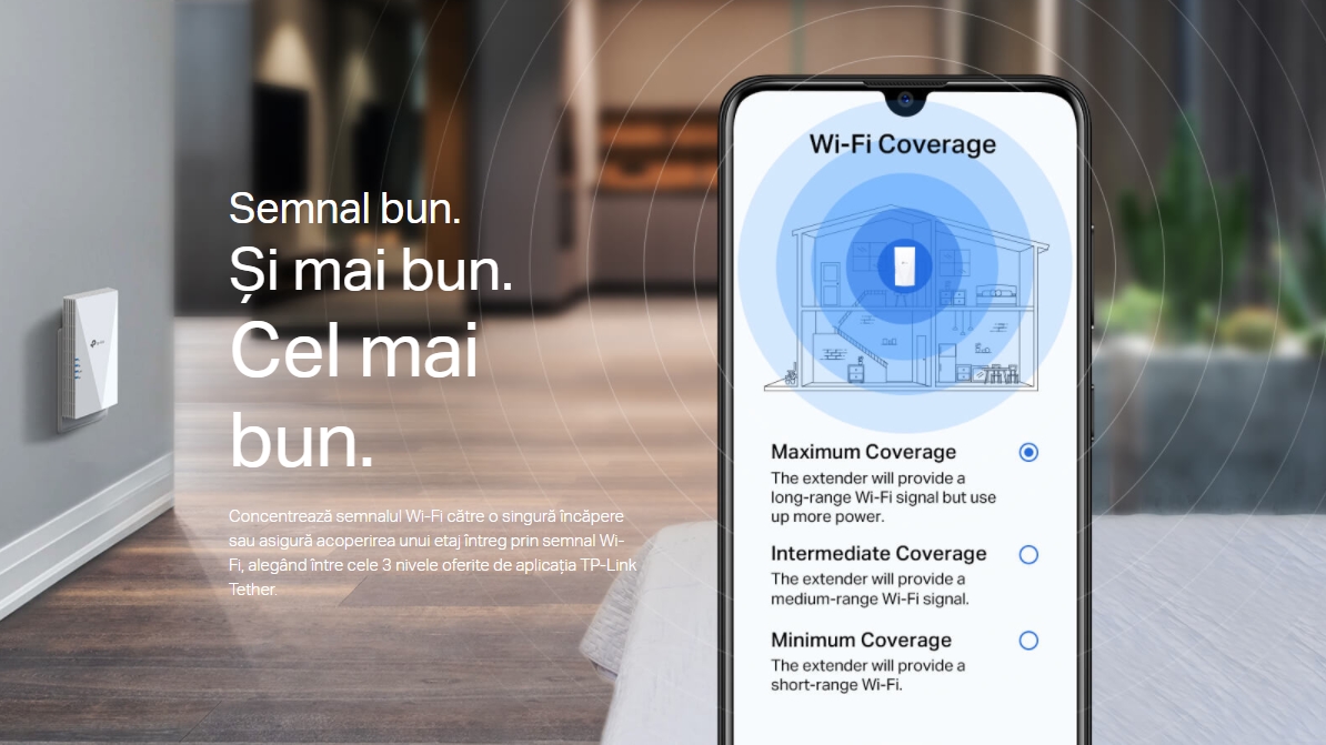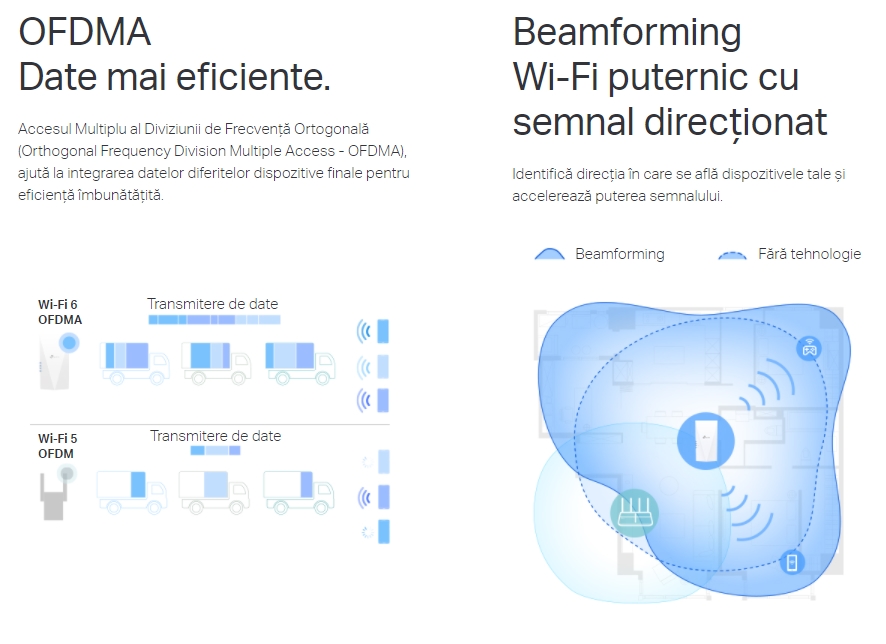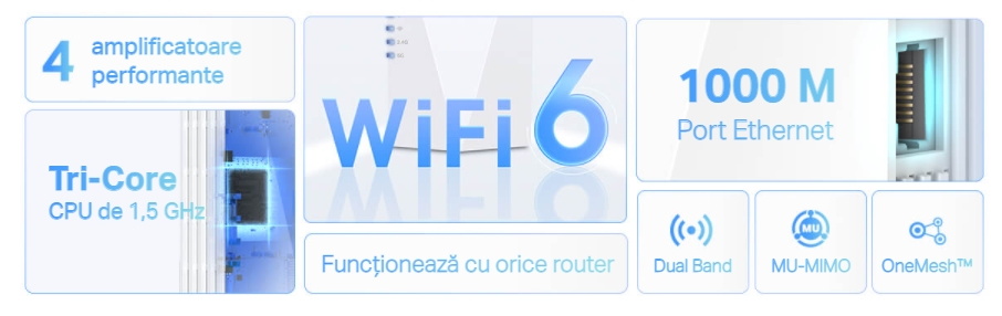 Descrierea produsului Range Extender Wireless TP-LINK RE500X, Gigabit, Dual Band, WiFi 6, 1500 Mbps, 2 x Antene interne (Alb)