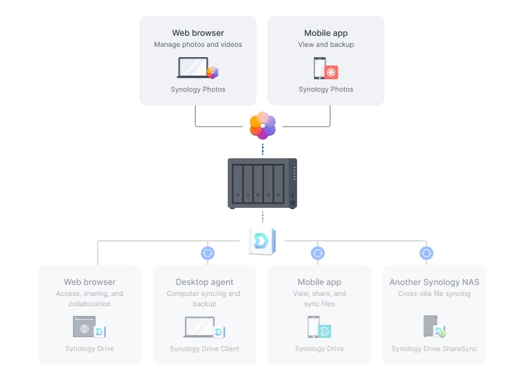 Imbunatatiti colaborarea la locul de munca cu solutiile de productivitate Synology. Creati, editati si partajati documente intre echipe in timp real. Gazduiti un server de e-mail on-premises pentru a oferi acces la e-mail bazat pe web, pastrand in acelasi timp proprietatea deplina asupra datelor. In plus, ramaneti conectat prin chat-uri securizate unu-la-unu, canale publice, canale private criptate si conversatii de grup.