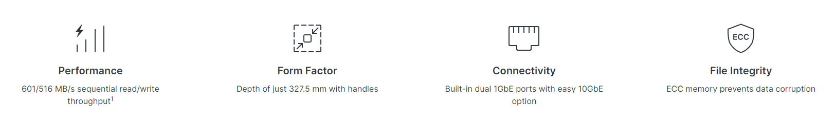 Datorita sasiului sau compact de 1U, RS422+ se potriveste perfect intr-un rack cu 2 stalpi sau cu montare pe perete. Implementati-l in medii cu spatiu limitat sau oriunde altundeva fara a investi in kituri de sine costisitoare sau in alte echipamente de server.