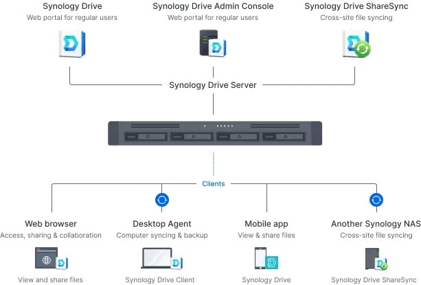 Permiteti o colaborare eficienta cu Synology Drive Synology Drive ofera acces la distanta la date, sincronizare, restaurare la cerere a fisierelor si backup prin intermediul aplicatiilor practice pentru desktop si mobil.