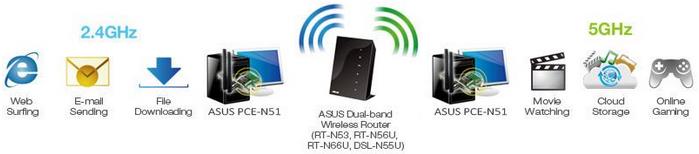 Descrierea produsului Placa de retea wireless ASUS PCE-AC51, Dual Band, 750 Mbps, PCI-E, 2 Antene externe