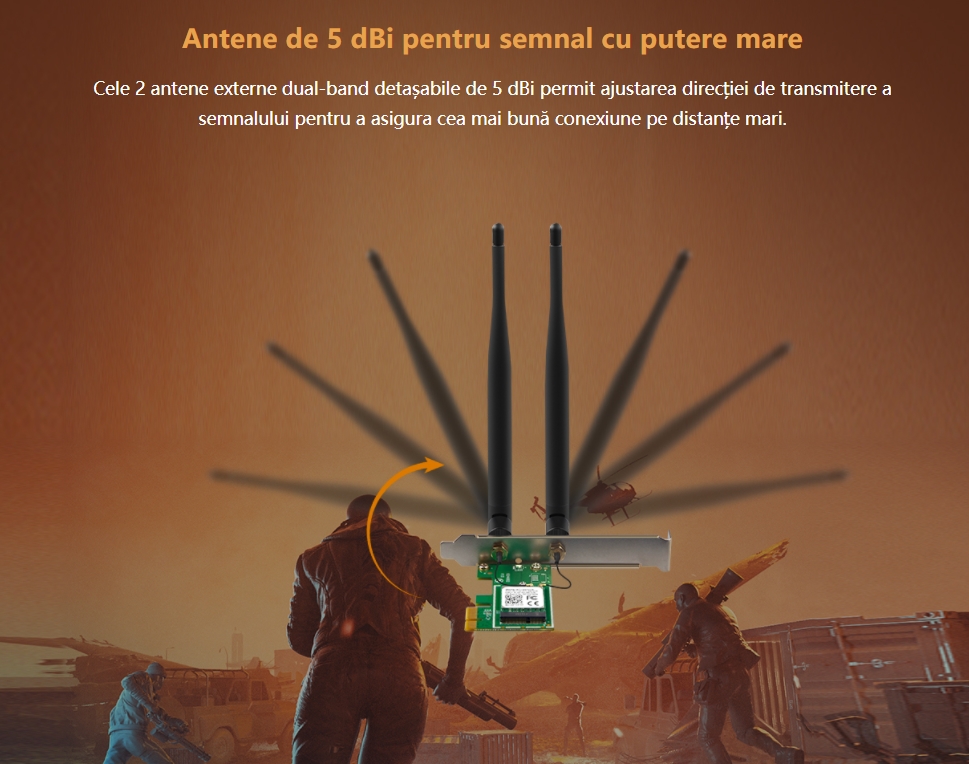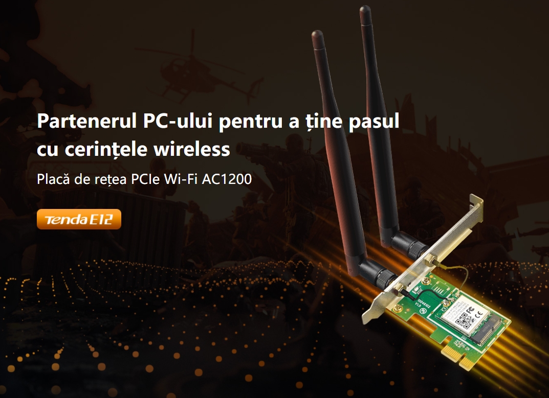Descrierea produsului Placa de Retea Wireless Tenda E12, AC1200, Dual-Band