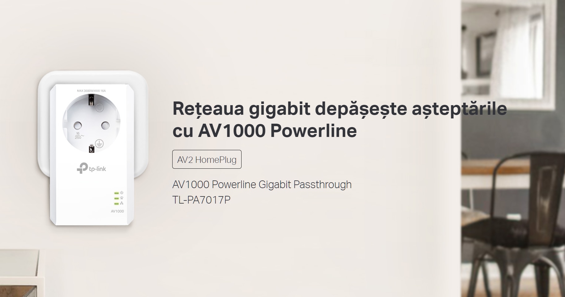 Descrierea produsului Adaptor Powerline Tp-Link TL-PA7017P, AV1000 Gigabit
